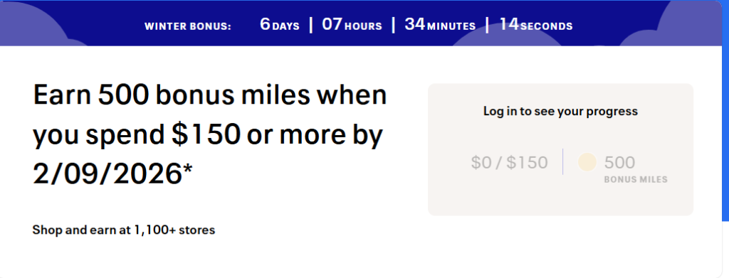 | United MileagePlus | 500 Miles | $150+ | Feb 11, 2026 |