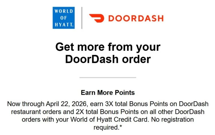 DoorDash & Hyatt Credit Card Deal Score 3X Points